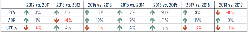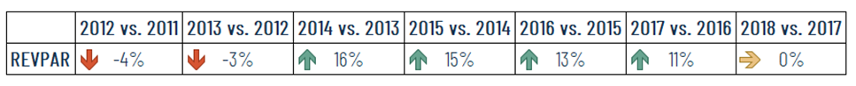 Anche il ricavo medio camera ha mantenuto una crescita costante dall’inizio della collaborazione fino al 2018.