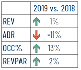 Grazie alla collaborazione tra canali online e offline nel 2019, a fronte di un lieve ridimensionamento del ricavo medio camera, il tasso di occupazione ha registrato un’impennata del 13% che ha portato nuovamente la produzione camere totale a un segno positivo: